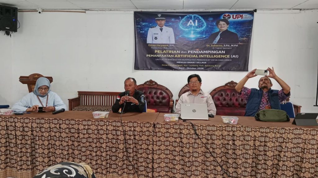 Desa Cikahuripan terus berupaya meningkatkan kualitas sumber daya manusia dan pelayanan publik melalui pemanfaatan teknologi digital. Salah satu langkah nyata yang dilakukan adalah penyelenggaraan kegiatan Pelatihan dan Pendampingan Pemanfaatan Artificial Intelligence (AI) bagi perangkat desa dan pelaku UMKM, yang bertempat di Balai Desa Cikahuripan.